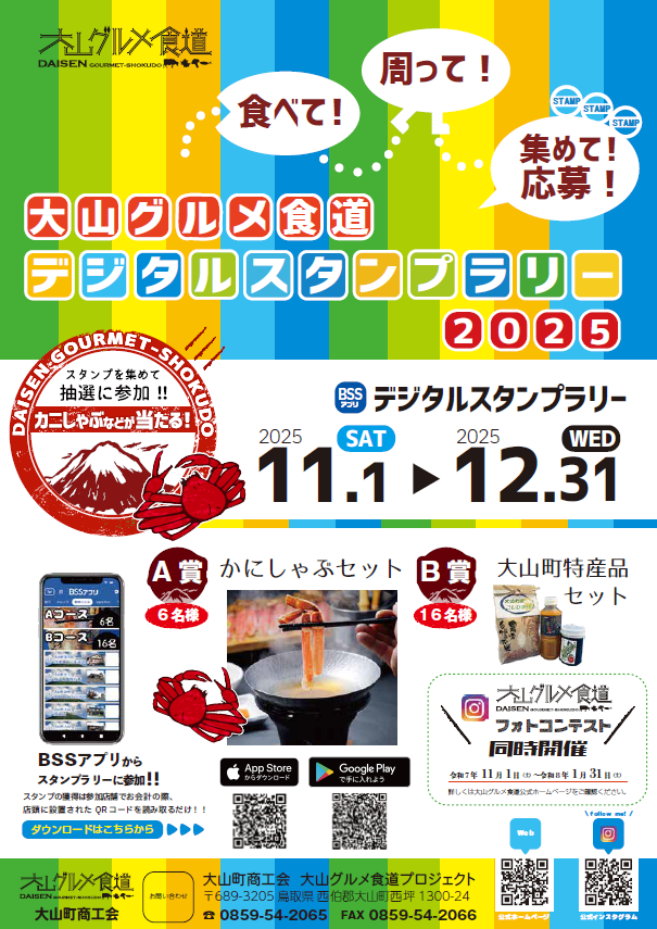 ぜひ、BSSアプリをダウンロードして、大山グルメ食道スタンプラリー2025にご参加ください!!