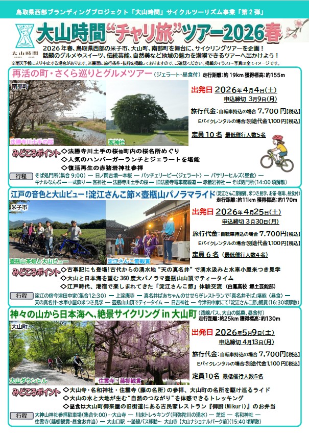 ぜひ、この機会に大山町の”チャリ旅”ツアー2026春にご参加ください!